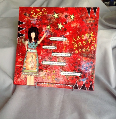 I created this one of a kind canvas piece for my friends who just released their fourth CD. The group is called HoneyHouse and they are a fabulous group of ladies with a true talent. If you haven't heard them please check them out. They sing from the soul and I think that's what touches me artistically. This quote can be found on the inside jacket of the new CD. I always find it crazy how I can see something and instantly the picture pops in my head. That is what happened here. I'm trying to challenge myself more by doing some sketching which I did on the background. I also drew hair for the first time and am amazed it came out ok. I gave this girl some Texas hair....big! Lol! I presented this to the group at their CD release party and they loved it. There was tears and lots of hugs. I'm so glad this came together like it looked in my head. I have more projects coming. Thanks for coming by!